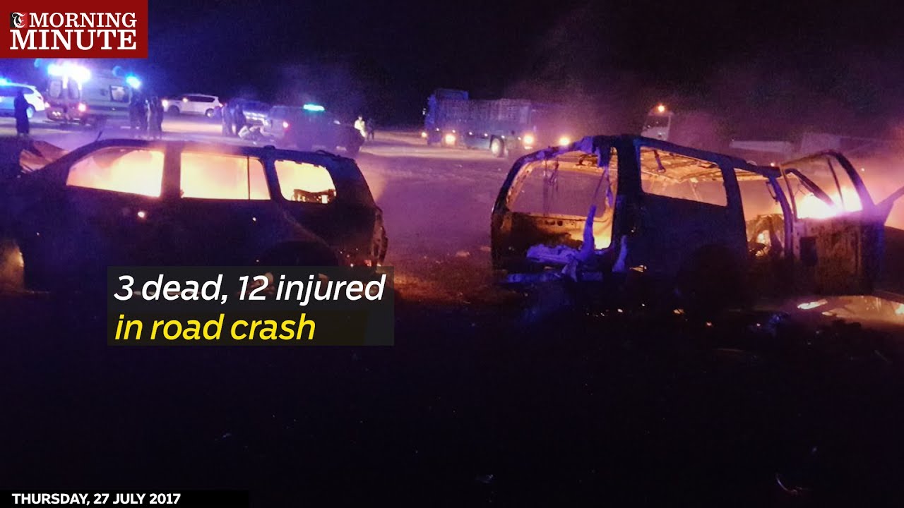 Thursday 27/July/2017 07:23 AM 3 dead, 12 injured in road crash Three people have died and 12 more were injured after a three-vehicle collision in Oman